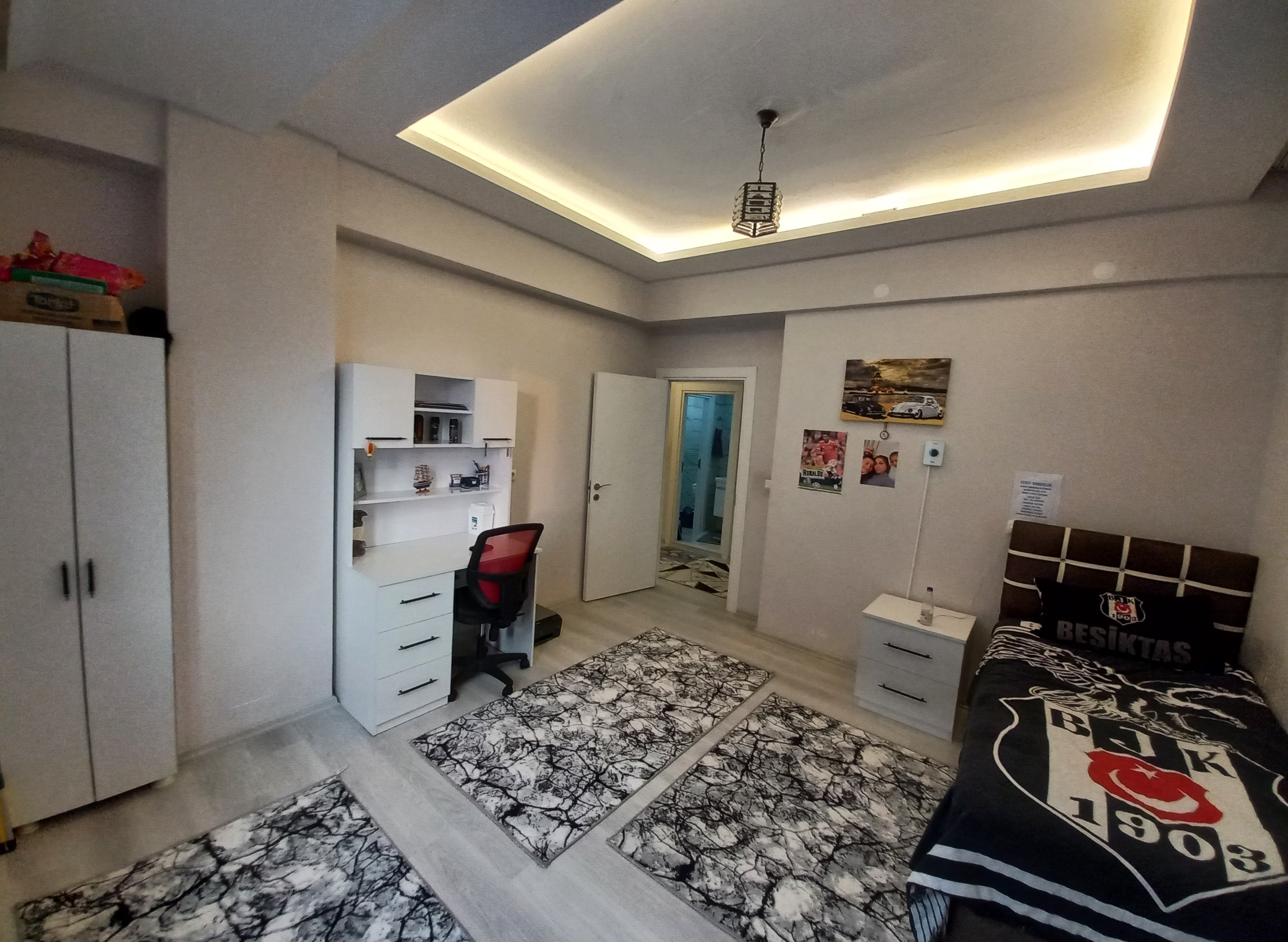 Yatak odası dolabı sabittir. (1.sınıf malzeme ve geniştir.)